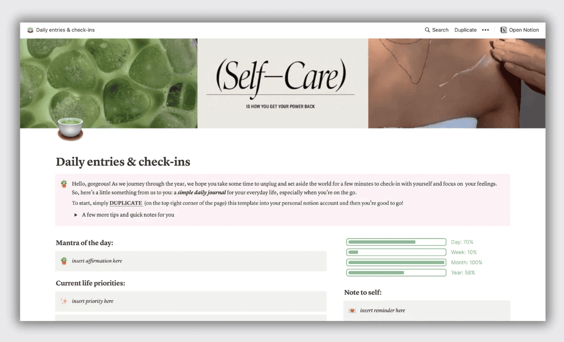 Self-care boost: Daily check-ins ensure you prioritize reflection and well-being.